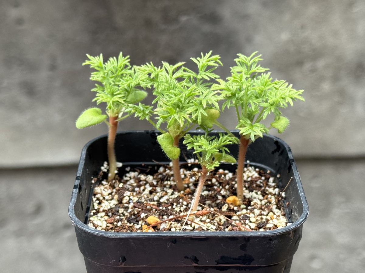 播種から1ヶ月が経過したペラルゴニウム ヒルツム